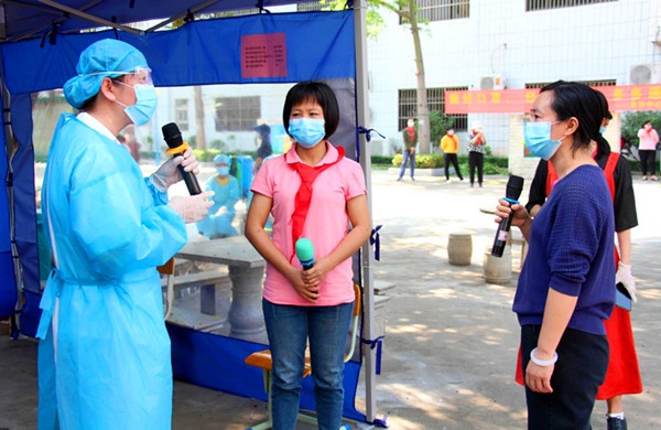 根据广东省教育厅《关于全力防控疫情确保开学安全的通知》、《关于全员全过程全方位周密防控确保开学安全的通知》和《中山市中小学(幼儿园)开学准备工作导则》的通知等有关新冠肺炎疫情防控和开学准备工作的文件精神,阜沙中心小学安排进行新冠肺炎疫情应急处置演练,由马成海副校长主持,主要情景有:模拟老师驾车上班,值班保安给老师测量体温现场;模拟上学,值日老师给学生测量体温现场;模拟值日老师发现有学生体温高于37.3℃时处理现场;模拟上课某班学生出现发热、呕吐症状时处理现场;模拟学生午餐现场;模拟学生放学离校现场。为了演练更加逼真,学校成立导演组,根据学校一日的教学活动过程,从上学、上课、午餐、放学等环节可能出现的情况,编写剧本,每个情景安排一位行政负责排练,经过两次的彩排,今天的演练非常成功,老师们熟练操作,过程流畅。