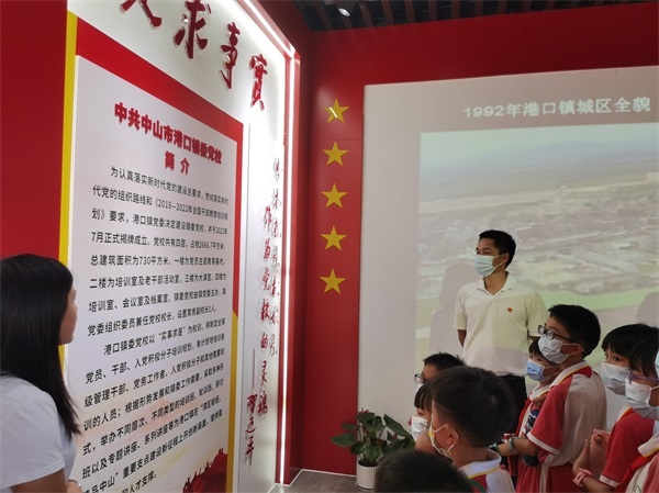 全体党员教师以及学生代表们到达了镇委党校一楼党员教育基地,随后,参观人员跟随着讲解员的脚步,重温了那一段段感人的红色记忆,从一本本珍贵的书籍,一张张翔实的图片资料中,师生们学习了“南湖曙光”、“万里长征”、“开国大典”等重要历史事件,了解到港口镇革命先辈欧初、梁祥胜的先进事迹,深刻地感受到革命先烈艰苦朴素的革命作风、坚定不移的革命信念和大无畏的革命精神,更加体会到今天的幸福生活是来之不易的。此外,师生们还通过观看以港口镇三十年变迁为主题的影像片,了解到港口镇的发展历程,港口镇往昔神秘的模样在师生们的面前揭开,从沙田到高楼林立,从小路到高架桥,那段珍贵的影片诉说着港口镇经济腾飞的历程。通过参观学习,师生们对共产党的革命、建设与改革的光辉历程有了更深刻的理解。