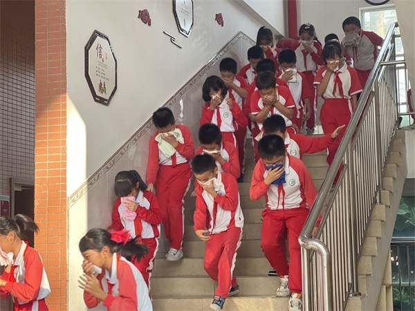 11月9日下午,学校联合群乐社区消防队开展了消防应急逃生演练和培训活动。随着警报声响起,消防逃生演练正式开始。各班老师提前到位,沉着冷静地指挥学生按照指定路线有序撤离,学生们在老师的指挥下,用手帕、毛巾等捂住口鼻,弯着腰,有序迅速地沿着指定路线逃生。在操场集合完毕后,德育处余丽苑主任对此次逃生演练进行了小结,她指出,整个逃生过程紧张有序,无推挤、踩踏、掉队等情况,达到了预期的演练效果。余主任还强调,当火灾来临时,因燃烧而产生的有毒烟雾会弥漫整个室场,争取最短的时间逃离现场是求生的关键。