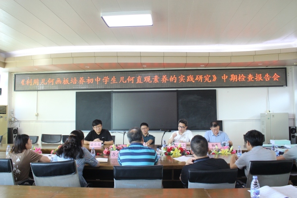 2022年6月16日下午,由港口镇大南中学潘又保老师主持的中山市2020年教育科研课题《利用几何画板培养初中学生几何直观素养的实践研究》中期检查报告会在学校四楼荣誉室举行,报告会邀请了中山市教育教学研究室周曙副主任,港口镇教育和体育事务中心张育文主任,华师中山附中杨希副校长,西区街道教育和体育事务中心教研员梁亮亮老师四位专家莅临指导,港口镇教育和体育事务中心苏少伟专干、港口镇大南中学廖建红校长及课题组全体成员参加本次报告会。