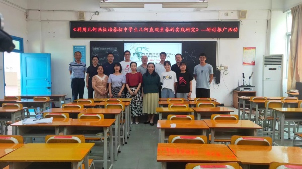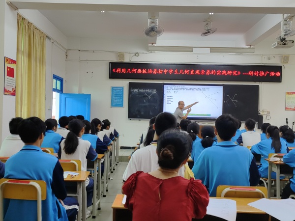 为扩大课题的辐射作用,2022年6月2日下午,港口镇大南中学市级立项课题研讨推广活动在大南中学一楼多媒体室成功开展,本次活动得到港口镇教育和体育事务中心苏少伟专干、港口镇大南中学廖建红校长、沙溪镇教育和体育事务中心教研专干孙彦涛老师悉心指导。参与本次活动的还有片区招生范围内的部分小学数学老师、大南中学全体数学教师和课题组全体成员,活动由潘又保老师主持。