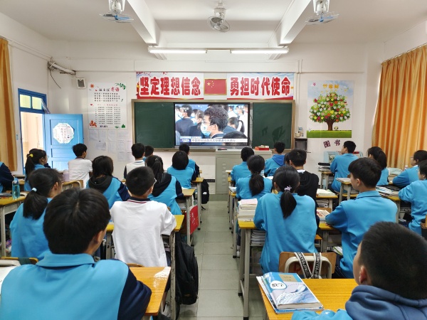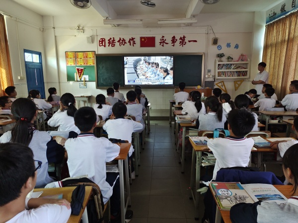 2021年12月9日15:40分,神舟十三号乘组航天员翟志刚、王亚平、叶光富在空间站进行太空授课,中山市港口镇大南中学组织全体师生学习观看这场天地对话,开展了“天宫课堂”第一课主题活动。