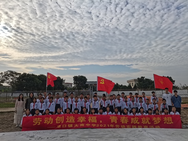 为了使劳动教育融入学生日常学习和生活,让学生学会基本的劳动知识和技能,让学生们体验劳动的快乐,培养学生自觉劳动、勇于创造的情怀,引导学生增强社会责任感,懂得劳动最光荣、劳动最崇高、劳动最伟大、劳动最美丽。2021年11月17日早上,港口镇大南中学百余名师生走进港口镇劳动实践基地进行劳动实践教育活动。