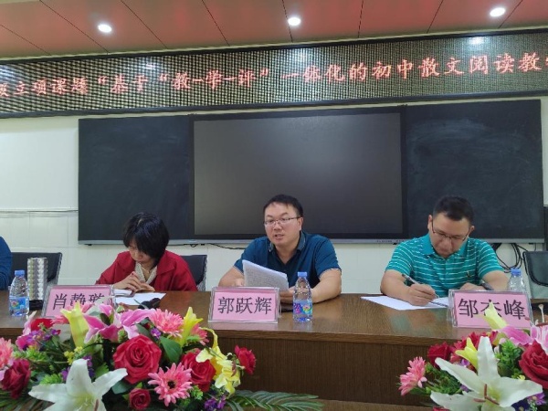 九点,语文市级立项课题《基于“教-学-评”一体化的初中散文阅读教学研究》开题,学校邀请了中山市初中语文教研员郭跃辉、中山市第一中学语文科组长肖静璇,民众中学语文高级老师邹杰峰担任开题评议专家,港口镇初中教研专干苏少伟、大南中学校长廖建红及课题组全体成员参加了本次会议。