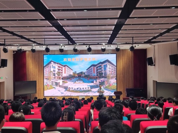 2023年4月21日上午,初三年级全体师生首先走进中山市实验中学,在实验中学老师的带领下,同学们参观了生物园、运动场、教学楼等。在老师的耐心讲解下,同学们踩着名校里的每一寸土地,感受着名校浓浓的文化气息,无不感慨万分,心生向往——这就是我努力的方向!为坚定学弟学妹们信念,现就读于实验中学的本校2022届优秀毕业生温一玮和邓涛同学做了励志发言,他们分享了初中三年的求学成长经历和自己在中考中制胜的秘籍,并热心地解答了学弟学妹们的十个问题。接着,实验中学刘湘衡老师对学校的办学理念、师资、硬件设施以及近年来取得的成绩等方面做了介绍,他的发言真诚质朴,让同学们很激动,相信定能激励到大南中学初三学子在接下来的求学路上砥砺前行,勇攀高峰。