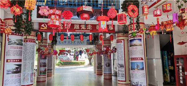 一花独放不是春,百花齐放春满园。家长们、学生们都积极响应,开动脑筋,充分利用纸盒、塑料瓶、利是封、一次性筷子等日常生活中废弃的材料,精心制作出一盏盏设计精巧、色彩缤纷、独具匠心的灯笼。有的灯笼热情似火,寄托着浓厚的情谊;有的灯笼婉约动人,承载着中秋的祝福;有的灯笼实用精巧,暗含着环保的创意……为了能让全校师生一同观赏,9月23日,综合科组的老师们积极筹备,把各班极具创意的手工灯笼都挂在学校内庭。灯笼一经展出,立刻吸引了广大师生驻足观赏。有了灯笼的装饰,校园内瞬间变得喜气洋洋。学生们下课后就聚集在灯笼下,兴奋地跟小伙伴分享自己喜欢的灯笼,非常快乐。