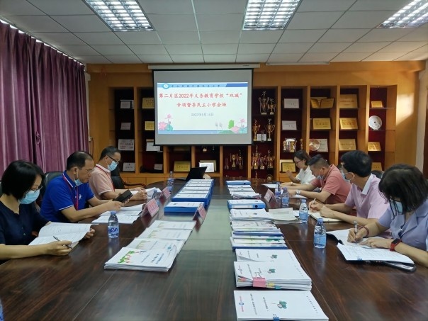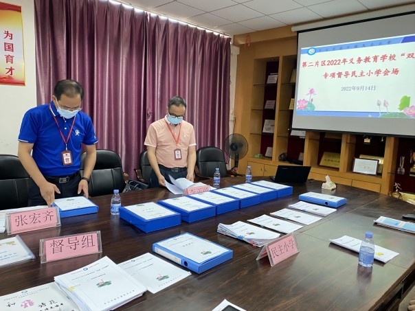 为了进一步指导学校规范办学行为,落实“双减”工作,进一步做好2022年秋季学期疫情防控工作,9月14日上午,民主小学迎来第二片区2022年义务教育学校“双减”专项督导检查,督导组专家小榄镇教育和体育事务中心的张宏齐副主任、李正可校长、陈凯冰主任到学校进行实地督导检查工作。民主小学党支部书记、校长林宗技及学校行政团队全程陪同检查。
