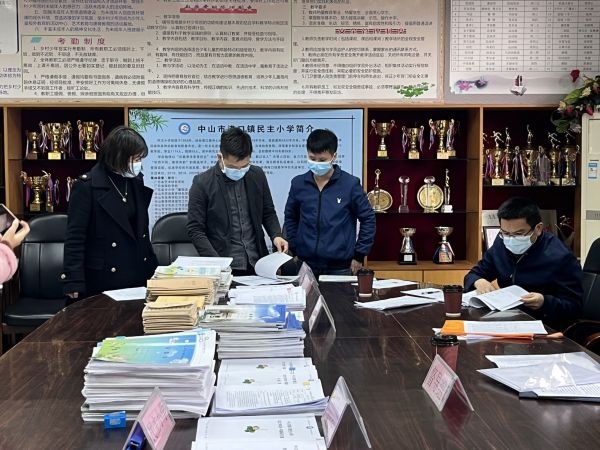 首先,李菲菲副校长以《凝心聚力扎实课堂教学 务实求真提高教学质量》为题向督导组作民主小学2022年教学工作汇报。随后,督导组专家按照《港口镇小学教学常规督导检查登记表》的各项指标进行认真、全面地核查档案资料。督导组对学校的教学常规工作的成效给予充分的肯定,并现场对一些工作细节如何落实到位进行提出针对性的整改建议和指导,为日后学校开展各项工作和活动指明方向。