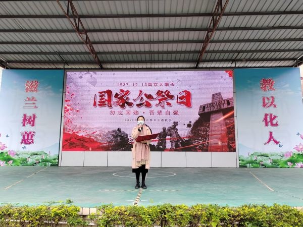 为深入贯彻学习党的二十大精神,全面推开党史学习教育,牢记侵略战争给中国人民和世界人民造成的深重灾难,进一步激发学生的爱国主义情怀,实现中华民族伟大复兴而不懈奋斗的正能量。12月13日上午,港口镇民主小学全体师生于学校操场上开展以“勿忘国殇,吾辈自强”为主题的国家公祭日主题教育活动,本次活动由李婉莹主任主持。