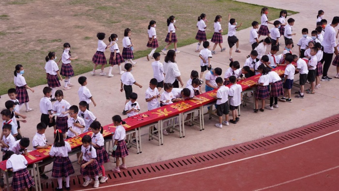 体验活动结束后,胡婵媛老师带领全体师生在国旗下进行防溺水安全宣誓,承诺履行防溺水“六不准”。最后,全体师生有序地在“预防溺水 从我做起”的安全教育横幅上签名,对自己的安全做出了郑重的承诺。
