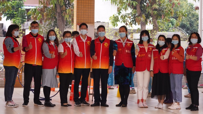 党员志愿者各司其职,积极投身到全员核酸检测第一线,与医务人员一起并肩作战。他们认真维护核检现场秩序、做好信息登记等工作,同时不断地提醒学生戴好口罩,有序排队,十人一组,保持安全距离。在党员志愿者们的指引下,学校全体师生教职工快速、顺利地完成了核酸检测。