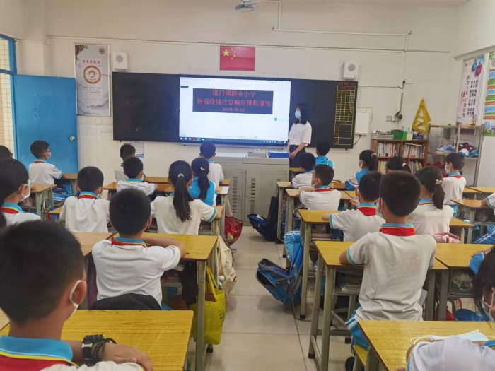 学校结合新冠肺炎疫情应急响应流程,模拟了“学校接到卫生健康部门通知学校人员是新冠肺炎的密切接触者”的场景和“学生在教室上课时出现发热”的情景。