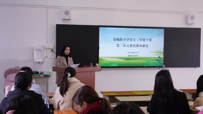 为加强小学语文教师对统编教材的深层解读,探讨单元整体视域下的教学策略,促进教师专业发展,2月23日,港口镇小学二年级语文单元教材解读活动在群众小学五楼教研室举行。港口镇教育和体育事务中心苏彩南老师和镇二年级语文任课老师都参加了此次活动。