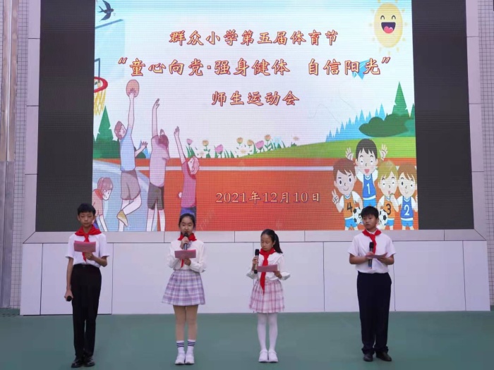 为进一步丰富校园文化生活,增强学生体质,培养学生积极进取的拼搏精神,鼓励学生积极参与体育锻炼,也为营造良好的星空体育氛围,推动学校精神文明建设,2021年12月10日,群众小学全体师生相聚美丽的校园,举行第五届“童心向党·强身健体 自信阳光”师生校运会。