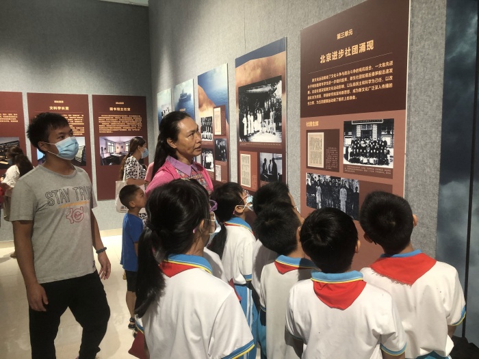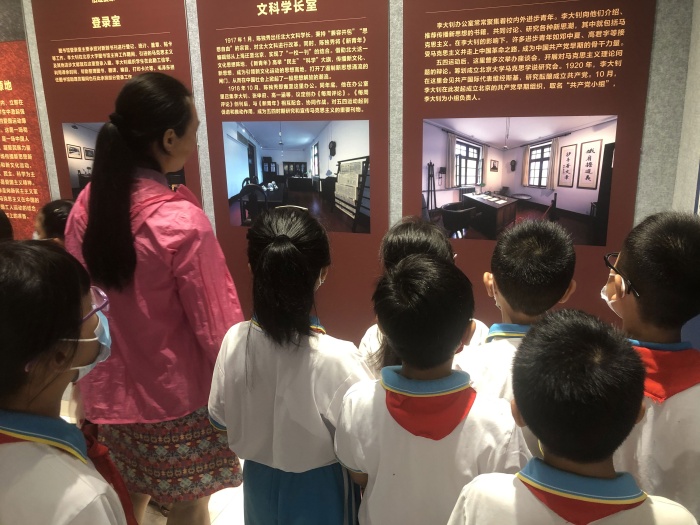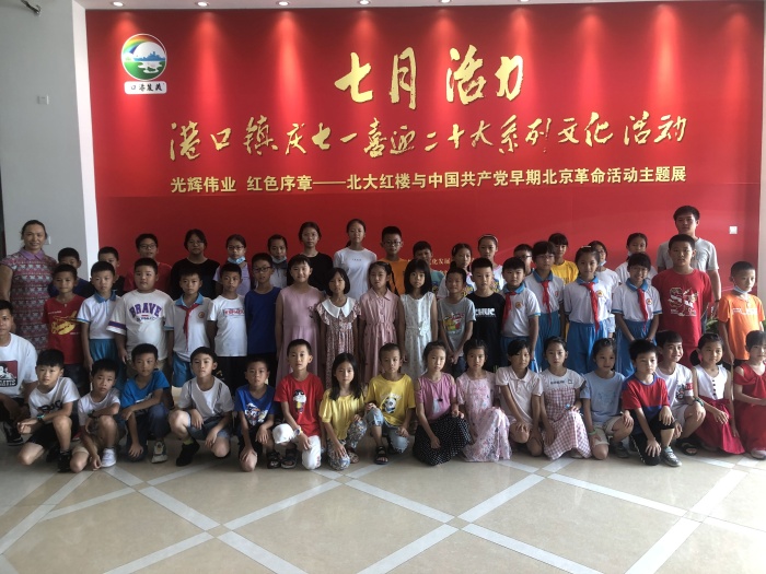 7月6日,港口镇群众小学组织部分师生、家长到港口镇文化中心参观港口镇“光辉伟业,红色序章—北大红楼与中国共产党早期北京革命活动主题”展览活动。