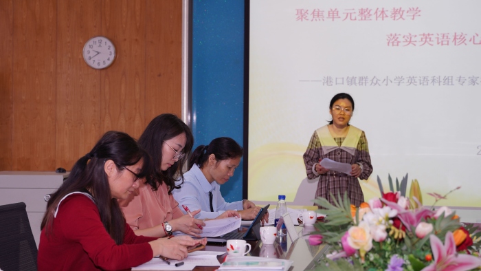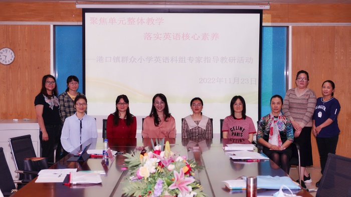 为进一步理解义务教育《英语课程标准》(2022年版),践行新课标理念,提升英语教师的单元整体教学设计能力,促进全体英语教师的专业成长,11月23日上午,港口镇群众小学英语科组开展以“聚焦单元整体教学,落实英语核心素养”为主题的教研活动,本次活动邀请了中山市小学英语教研中心组组长陈玉河老师莅临指导。港口镇教育和体育事务中心吴涛涛老师及群众小学英语科组全体成员参加了本次教研活动。