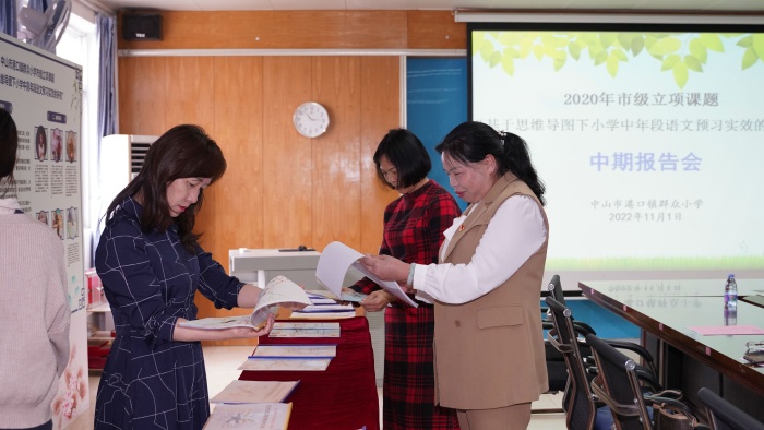 “船到中流浪更急,人到半山路更陡”。为更好地总结课题研究阶段性开展情况,提炼成果,明晰课题后期研究方向,及时做出反思、归纳、深化、细化,2022年11月1日下午,港口镇群众小学2020年市级立项课题“基于思维导图下小学语文中高年段语文预习实效的研究”中期报告会在学校会议室举行。中山市课题专家、广东省特级教师、中山市实验小学吴海飞主任,课题管理人梁文玲老师,港口镇教育和体育事务中心苏彩南老师及兄弟学校的同行们到校指导;港口镇群众小学梁铨华校长、苏小蓉副校长,课题组全体成员及语文科组全体老师参加了本次活动。