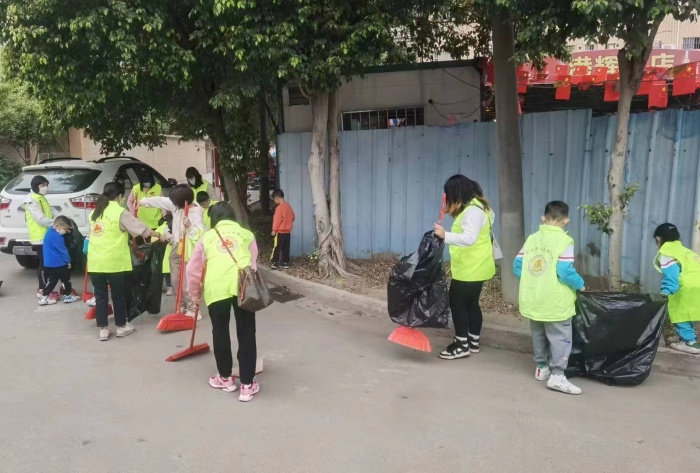 “学习雷锋好榜样,忠于革命忠于党……”一首耳熟能唱的歌曲再次响彻在群众小学校园内外。3月春意盎然,在学雷锋日到来之际,3月4日早上9点,港口镇群众小学一年级组几十个亲子家庭小手拉大手,大手牵小手,在群众社区党政干部的带领下,到所在社区开展亲子“爱国卫生志愿活动”。