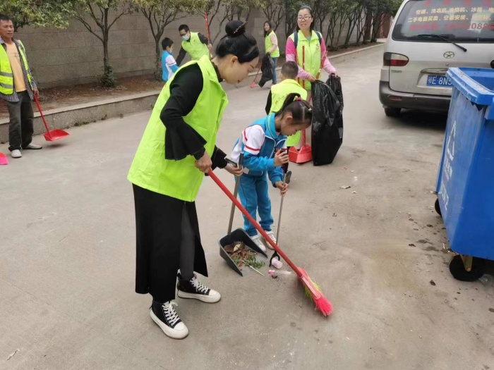 志愿者们准时在群众社区门口集合,穿着志愿者服装,拿起了扫把、垃圾铲、钳子等清洁的工具,迅速地投入到了爱国卫生清洁工作。“小雷锋”们纷纷拿起扫帚、钳子、垃圾袋、垃圾铲等,在爸爸妈妈的指引下,干得有板有眼。“大雷锋”们更是干得热火朝天,个个不放过每一个卫生死角,所过大街小巷焕然一新。