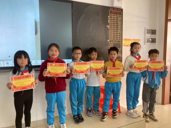 学校坚持对年级月积分前5名的学生进行表彰和派发奖状;班级中,班主任对积极参与学习强国打卡活动的学生,也加以表彰和鼓励。
