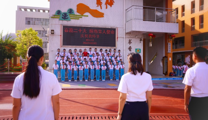为进一步营造“尊师重教”氛围,弘扬尊师重教良好风尚,激励教师热爱教育事业,积极进取,开拓创新,在第38个教师节来临之际,9月9日清晨,群众小学举行主题为“喜迎二十大 担当育人使命”庆教师节活动。