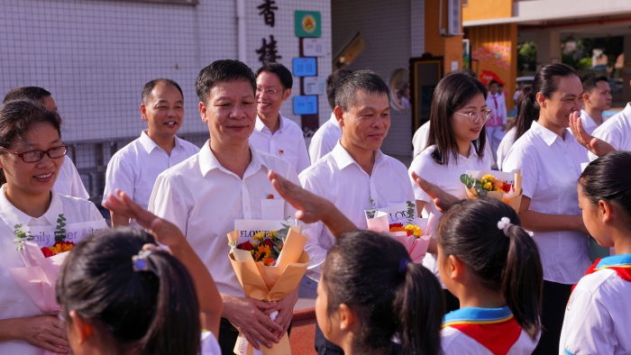 最后,梁铨华校长向全体教师致以最真切的祝福与节日的问候,鼓励老师们要努力成为习近平总书记提出的“党和人民满意的“四有”好教师”,不忘教书育人初心,牢记立德树人使命,用爱用情用心做好工作,为孩子们的健康成长保驾护航。希望老师们继续砥砺前行,不忘初心,方能担当育人使命,做一个卓越的教育人;希望同学们能用实际行动来感恩老师,回报老师。