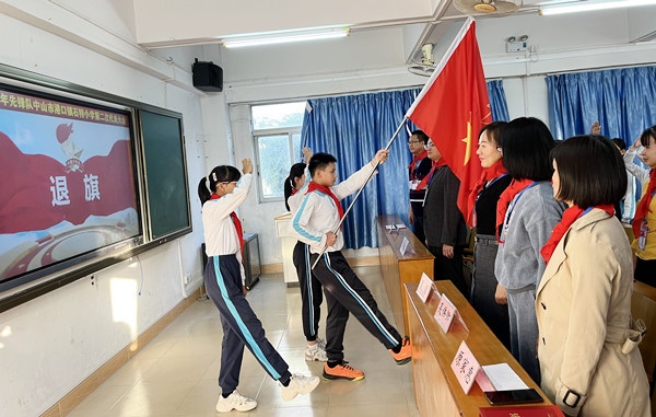 在主持人慷慨激昂的开场后,全场与会代表齐唱国歌,浓浓的爱国情溢满校园。随后,出旗,全体少先队员代表敬队礼,热情澎湃地唱响少年先锋队队歌,嘹亮的歌声表达出队员们心中的无上光荣。接着,优秀少先队员代表袁芯蕾、何昕怡、周恒杰、吴丽辉代表全体队员向大会献词,他们以红领巾的名义,对祖国郑重宣誓:请党放心,强国有我。