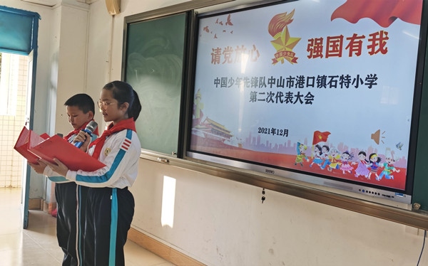颗颗童心凝聚在一起,星星火炬闪耀着光芒,在中国共产党的带领下,中国少年先锋队走过了72年的光辉历程。为深入贯彻落实习近平总书记关于少年儿童和少先队工作的重要指示精神,推动党建带队建机制,增强少先队员的光荣感,12月9日下午,中国少年先锋队中山市港口镇石特小学第二次代表大会胜利召开。港口镇团委书记、港口镇少工委主任李冠良、港口镇少工委副主任夏荣、学校少工委领导、家委会代表、辅导员代表和少先队员代表共同参加大会。