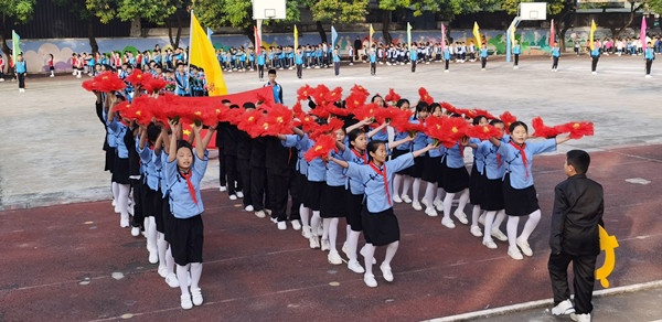 开幕式上,在振奋人心的《运动员进行曲》中,旗手们带着庄严的神情,迈着矫健的步伐,肩上扛起国旗与校旗,率先通过主席台。鲜花、彩旗方阵昂首阔步、英姿飒爽,点燃了运动会热烈的氛围。紧随其后的是各班学生方阵,他们精神饱满、气宇轩昂的通过主席台,每个班级都精心策划队伍的进场方式,展现了同学们良好的精神风貌。随着裁判代表和运动员代表庄严宣誓结束后,学校的跳绳队、舞蹈队也带来了精彩的节目,引得全场观众掌声连连。