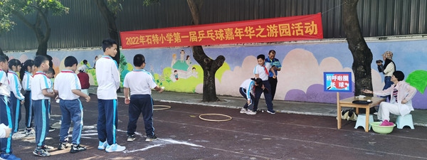 为强健师生体魄,传承乒乓球文化,发扬国乒精神,激发学生对学习乒乓球的兴趣,打造一张以“乒乓球”为特色的新名片。4月8日下午,石特小学举行了首届乒乓球嘉年华开幕式暨游园活动。出席本次活动的领导和嘉宾是石特社区梁锡明书记、梁伟权副书记,还有石特小学苏少丽校长以及一众行政。