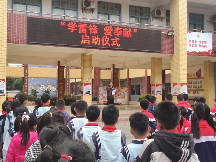 在倡议中除了要求学生学习雷锋精神之外还有用实际的行动参与到弘扬雷锋精神中来。宣读倡议后紧接着是梁广平主任解读“学雷锋,爱奉献”活动月的方案。本次的“学雷锋,爱奉献”活动月分为三大板块,一是学习雷锋精神,二是践行雷锋精神,三是分享总结雷锋精神。学校通过开展班会、广播站宣传等来学习雷锋精神,通过爱国卫生、爱心义卖会、劳动基地除草等活动来践行雷锋精神,最后总结表彰突出的学生来分享并总结雷锋精神。