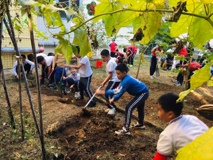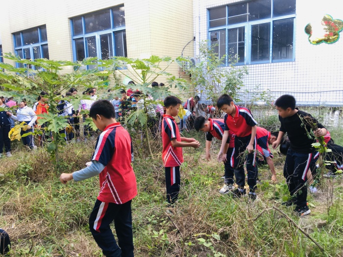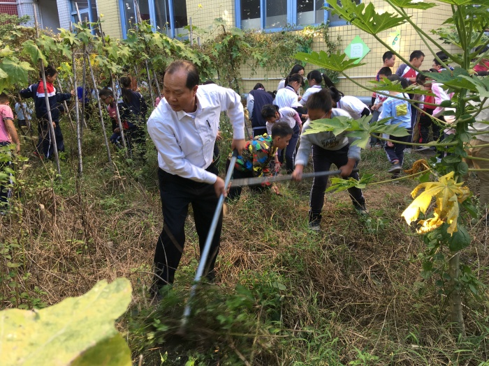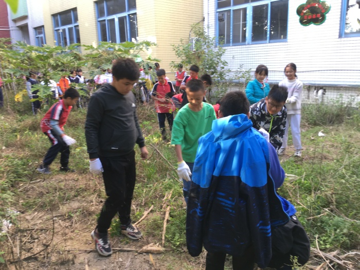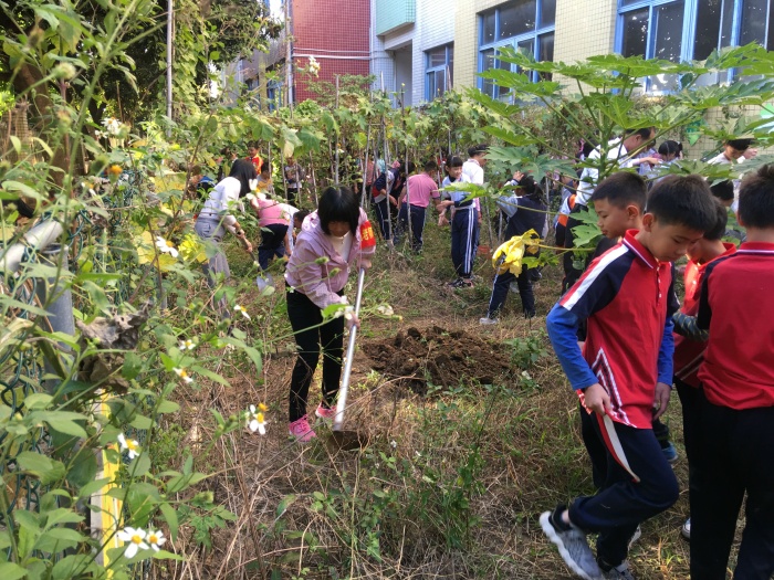 第二个是劳动实践基地的除草、翻地活动,由三2班、4—6年级的同学参加。由于菜地面积不大,每班大约派20个学生代表参加实践。在梁广平主任先给学生们强调劳动的注意事项,再由各班主任带领学生们劳作。菜地杂草丛生,同学们毫不畏惧,有的徒手拔,有的用小铲子铲,有的用锄头锄,有的负责把杂草搬走,大家齐心协力,菜地很快就被清理干净。接着是翻地的工作。有个别学生还不能熟练地使用锄头,班主任就进行悉心的指导。学生们的额头满是汗水,但也挡不住他们对劳动的好奇与热爱。最后整个劳动实践基地都被收拾得平平整整,为下周的种植活动打下了基础。