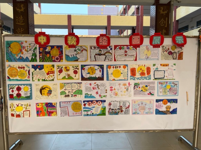 上午,学校分年段开展了丰富多彩的活动。一、二年级的同学们拿起画笔,用五彩斑斓的色彩表达他们对老师的浓厚感情以及对节日的美好祝福,展现“中秋”的月圆,“嫦娥”的思念,以美怡情,沉浸在节日的氛围里。