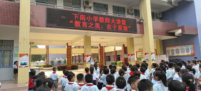 在学校德育处的精心安排和组织下,每周一的升旗仪式新增了一个师生展示环节,学生才艺展示环节还有现场评委打分、点评。教师围绕一个主题进行演讲,对孩子们进行教育。学生展示环节以班级为单位,结合班级特色、学生才艺进行展示,有的表演歌唱、有的表演魔术、有的表演古诗吟诵,形式丰富多彩。
