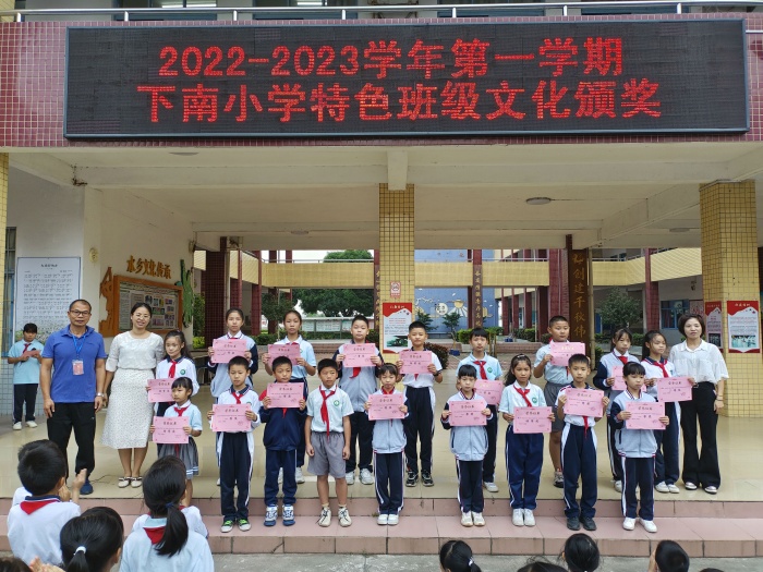 金秋时节,秋高气爽,瓜果飘香。为了喜迎党的二十大,传承中华优秀的传统文化,加强校园文化建设,提升学校文化品位和内涵发展,近日,港口镇下南小学开展班级文化建设评比活动,11月21日升旗仪式上,学校为其颁发了奖状。