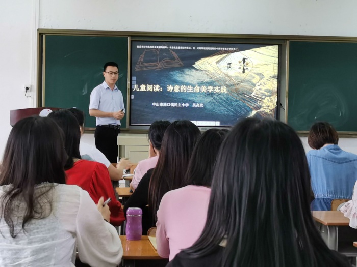 2022年6月16日下午,西街小学根据学生阅读量亟待提高的学情,为了指引和启发语文老师开展儿童阅读推广工作,特邀请民主小学吴高欣老师为语文科组全体教师进行“儿童阅读:诗意的生命美学实践”专题培训。