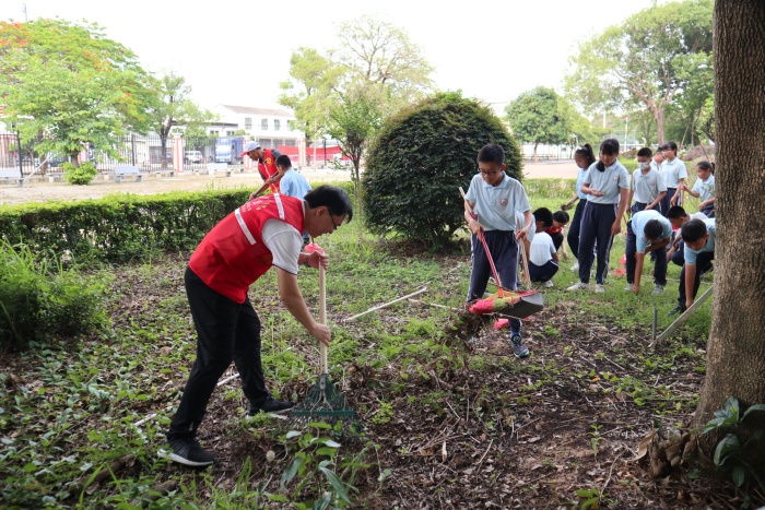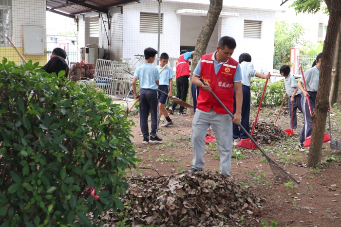 针对三处校园卫生死角,本次清洁活动所有参与人员共分成三组,分别由西街小学党支部梁容根书记、西街小学党支部黄权炎副书记和西街小学党支部支委李桂华老师带领。下午三点五十分,西街小学党支部全体党员及六(1)、六(4)、五(4)三个中队队员在西街小学党建文化绿化带前集合,简单的分工、劳动工具分配和活动前合影之后,便在各组负责人带领下前往相应卫生死角处进行清扫。师生们齐心协力、配合默契,有的拿大铁耙勾卫生死角的垃圾、有的拿扫帚和垃圾铲装捡、有的则负责移动垃圾桶前往各处协助清除垃圾,有些党员教师队员干脆赤手上阵,细心地清除各处的杂草、捡拾长条的树枝。一时间,三处少有人前往的校园一角重现勃勃生机。