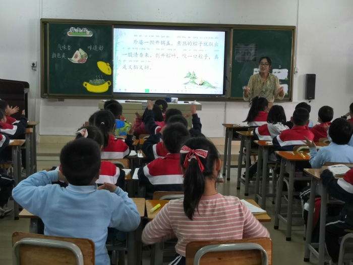 赛课期间,教师们展示了独具匠心的课堂教学。如:施秋怡老师的语文课《端午粽》,不但为孩子们带来了一股诱人的粽香,而且让孩子们体会到一份浓浓的亲情,让孩子们在情景学习中了解我国的传统节日,感受中华民族传统文化的深厚底蕴;梁志津老师执教的数学课《长方形和正方形面积的计算》,引导学生在猜一猜、摆一摆、拼一拼、验一验等数学活动中,自主探索,得出长方形和正方形面积的计算方法,充分体现了“自主、合作、探究”的课堂教学模式;曹子慧老师执教的英语课《Weekend Fun》,以学生熟悉的冬奥会自由滑雪项目冠军谷爱凌作为主角,创设真实的语境,让学生在真实的语境中学习和运用语言;杨楚楚老师的音乐课《小蜜蜂》,通过手势、演唱、舞蹈等多种形式,让学生在情境递进式中深度体验“咒语旋律”的奇妙。