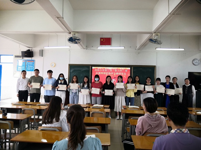 经过三天的激烈角逐,施秋怡、杨楚楚、曹子慧、梁志津、曹霞5位老师荣获一等奖;张玉媚、伍曲、谢沛桃、梁佩莹、林祖德、梁嘉慧、刘丽婷7位老师荣获二等奖;陈煜婷、叶珊珊、彭敏华、李小连、吴美金5位老师荣获三等奖。大赛最后,西街小学梁容根校长做了总结发言。梁校长对各位参赛教师的优缺点进行精准点评,并对青年教师的专业成长路指明了方向,鼓励青年教师要自信、多看书、主动虚心向有经验的老师请教,提高综合素养。
