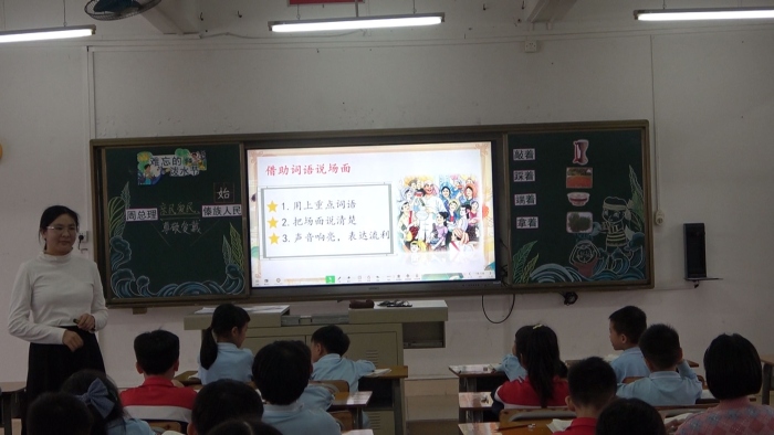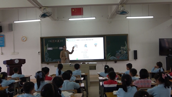 首先是由施秋怡老师展示《难忘的泼水节》第一课时的课例。本节课,施老师带领学生随文识字,力求“字不离词,词不离句”,音、形、义相结合,并通过学习说句子,在句子中运用字词,达到学以致用的目的。第二个课例是由谭碧宜老师执教的《难忘的泼水节》第二课时。谭老师巧妙借助图片、视频等多媒体资料,多维度地帮助学生更直观地了解故事背景,使学生与文本产生情感上的共鸣,让学生在读中思,在读中悟。