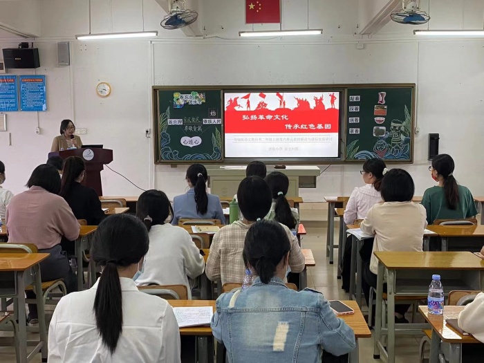 紧接着,西街小学语文科组长施秋怡老师从单元整体教学的角度进行详细阐述。她指出,革命教育主题单元要确定核心人文内涵,落实语言文字训练,实现“文道统一”。