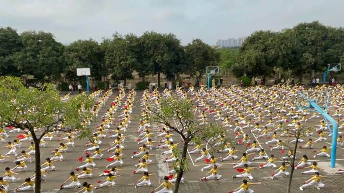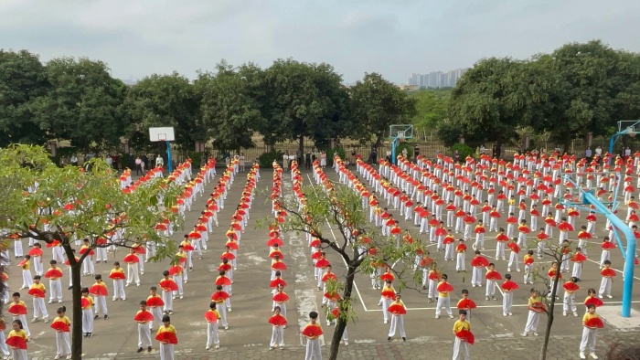 随着音乐声响起,同学们快速地整装列队来到操场上,家长们也一起前往,感受西小的阳光大课间。伴着轻快的乐曲,孩子们的扇操尽显英气,出腿、挥扇,干脆利落,气势如虹。健美操活力四射,处处散发着青春的朝气。八段锦刚柔相济,一招一式如行云流水,每个人都展示出西小学子健康向上、不屈不挠的精神。家长们纷纷露出赞赏的眼神,给予高度认可。