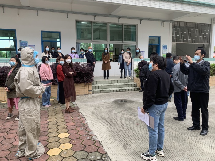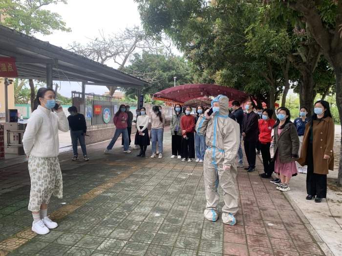 这次演练主要由德育处主任梁倚静负责组织,分三个场景进行校园疫情应急演练:第一个场景是学生返校进入校园时体温异常的演练;第二个场景是上课时学生发生身体不适的演练:第三个场景是学校接到通报,1名学生为新冠肺炎病例的密切接触者,被转运后该生核酸检测结果呈阳性的演练。演练中,老师们严格有序按照规定的流程进行,各工作组分工明确、反应迅速、协调有序,准确高效地完成了演练任务,达到了预期目的。