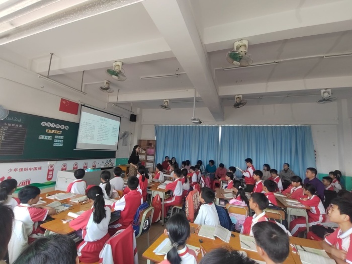 首先进行的是课堂教学环节。由中南小学郑金鑫老师执教《汉字真有趣》第一板块,郑老师紧扣单元语文要素和教材内容,通过小组合作探究法、自主阅读感悟法和发现点拨教学法,引导学生充分感受汉字的趣味性。中南小学卢嘉雯老师执教的是《我爱你,汉字》第二板块,卢老师结合学生实际,重点引导学生能围绕汉字的历史、汉字书法或其他感兴趣的与汉字有关的内容搜集资料,或者能调查学校、社会用字不规范的情况,写简单的研究报告。学生在教师的带动下积极开展实践活动,两节课将两个板块的内容进行了深入细致的展示,为学生后续的学习打下了坚实的基础。