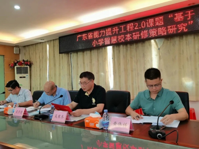 2022年6月29日上午,广东省能力提升工程2.0课题《基于“多技术融合”的小学智慧校本研修策略研究》开题报告会在港口镇中心小学会议室举行。中山市中小学教师信息技术应用能力提升工程2.0项目办公室主任吴寒冬,中山市教育技术中心副主任吴宇清,广东省特级教师、中山市信息技术教育专业委员会秘书长黄伟祥作为评审专家出席会议,港口镇教育和体育事务中心副主任刘浩平以及课题组全体成员参加了此次会议。会议由港口镇中心小学教导处副主任徐艳丽主持。