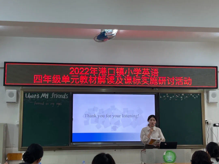 最是一年秋风好,金风玉露送秋实。为了加强小学英语教师对新课程标准、PEP人教版教材的深层解读,探讨单元整体视域下的教学策略,促进教师专业发展,10月28日下午,港口镇小学英语四年级上册Unit 3 My friends单元教材解读与课程标准实施研讨活动在港口镇中心小学举行。