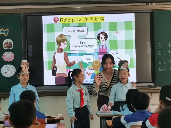 英语老师们注重创设情境让学生在相对真实完整的情境中习得语言,整体呈现课文,步步为营渗透知识点最后联系现实生活,进行教育。