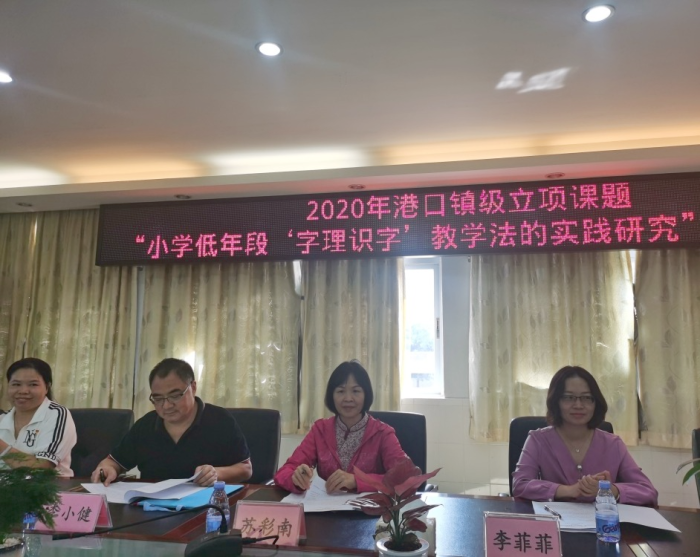 汉字有根,字理有魂。10月28日上午,镇级立项课题“小学低年段‘字理识字’教学法的实践研究”中期报告会在港口镇中心小学二楼会议室举行。出席本次报告会的人员有港口镇教育事务中心的苏彩南老师、民主小学李菲菲副校长、港口镇中心小学李小健校长、梁文玲副书记,还有镇内兄弟学校教师代表和课题组的全体老师们。会议由教务处吴高欣副主任主持。
