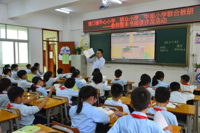 鸟欲高飞先振翅,人求上进先读书。为进一步落实新《义务教育语文课程标准》关于“整本书阅读”教学的要求,提高教师整本书阅读教学技能,2023年3月9日下午,港口镇中心小学、群众小学、中南小学三校联合在中心小学教研东室举行整本书阅读项目化学习教学研讨活动,港口镇各兄弟学校语文教师代表参加本次活动。