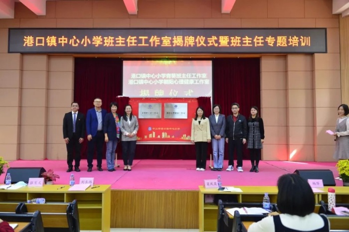 参加此次班主任工作室揭牌仪式暨班主任专业培训活动的人员有:港口镇教体文旅局刘长路副局长、港口镇教育和体育事务中心张育文主任、港口镇德育专干吴菊香老师、广东省名班主任梁凤英工作室主持人梁凤英老师、中山市特殊教育指导中心成员杨萍老师、中山市德育学科带头人港口镇民主小学荷馨班主任工作室主持人卢玉湘老师、港口镇中心小学行政和全体班主任以及兄弟学校老师代表。本次活动由梁银英主任主持。